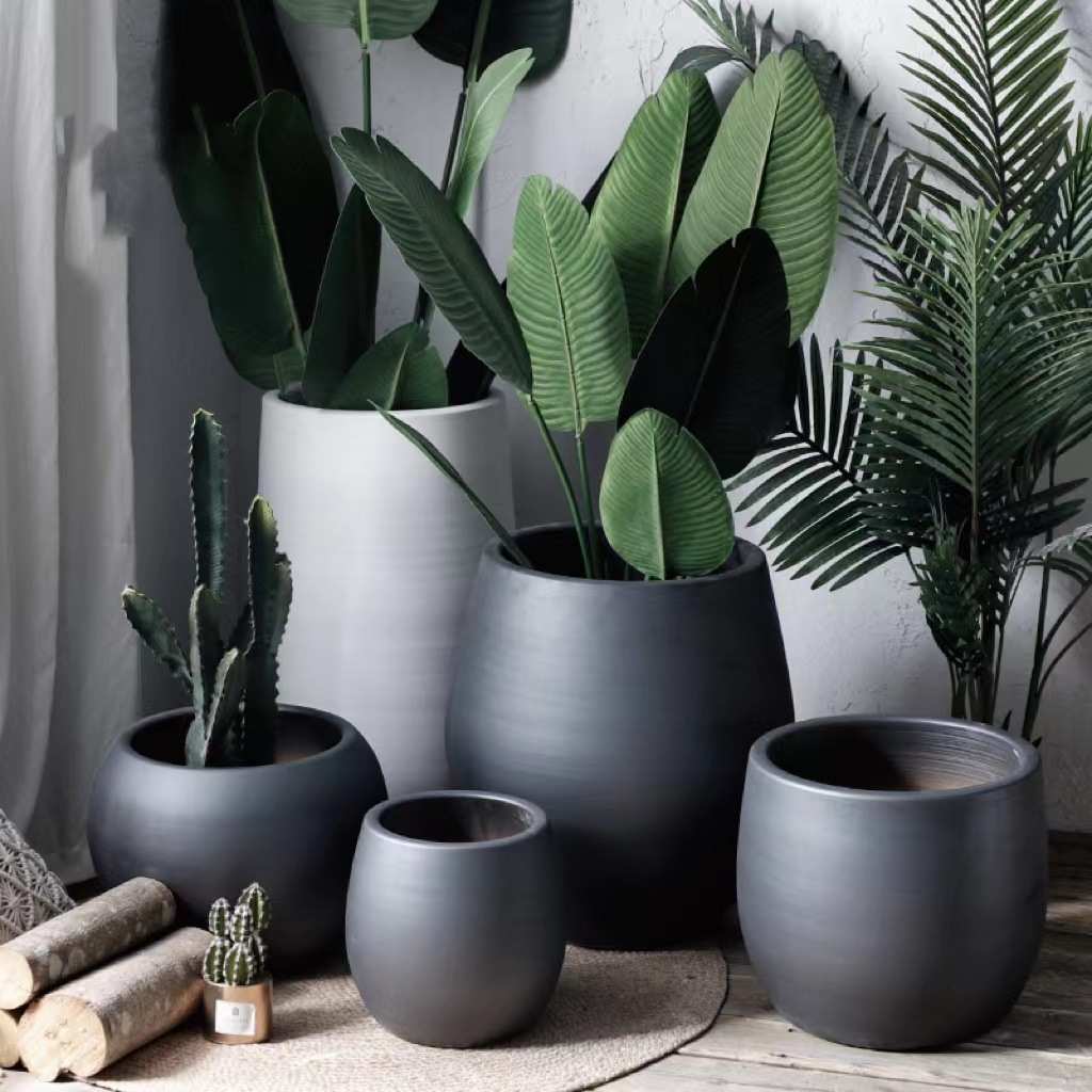 北欧花盆现代简约花瓶黑白色陶瓷绿植水培陶罐大口径室内植物摆件