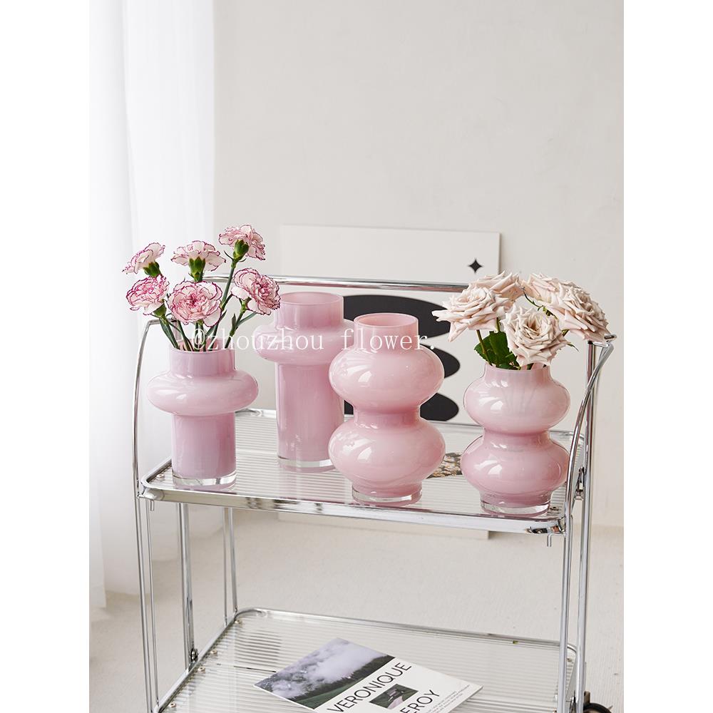 现代简约花瓶高级感法式复古奶油风客厅餐桌装饰玻璃插花摆件鲜花