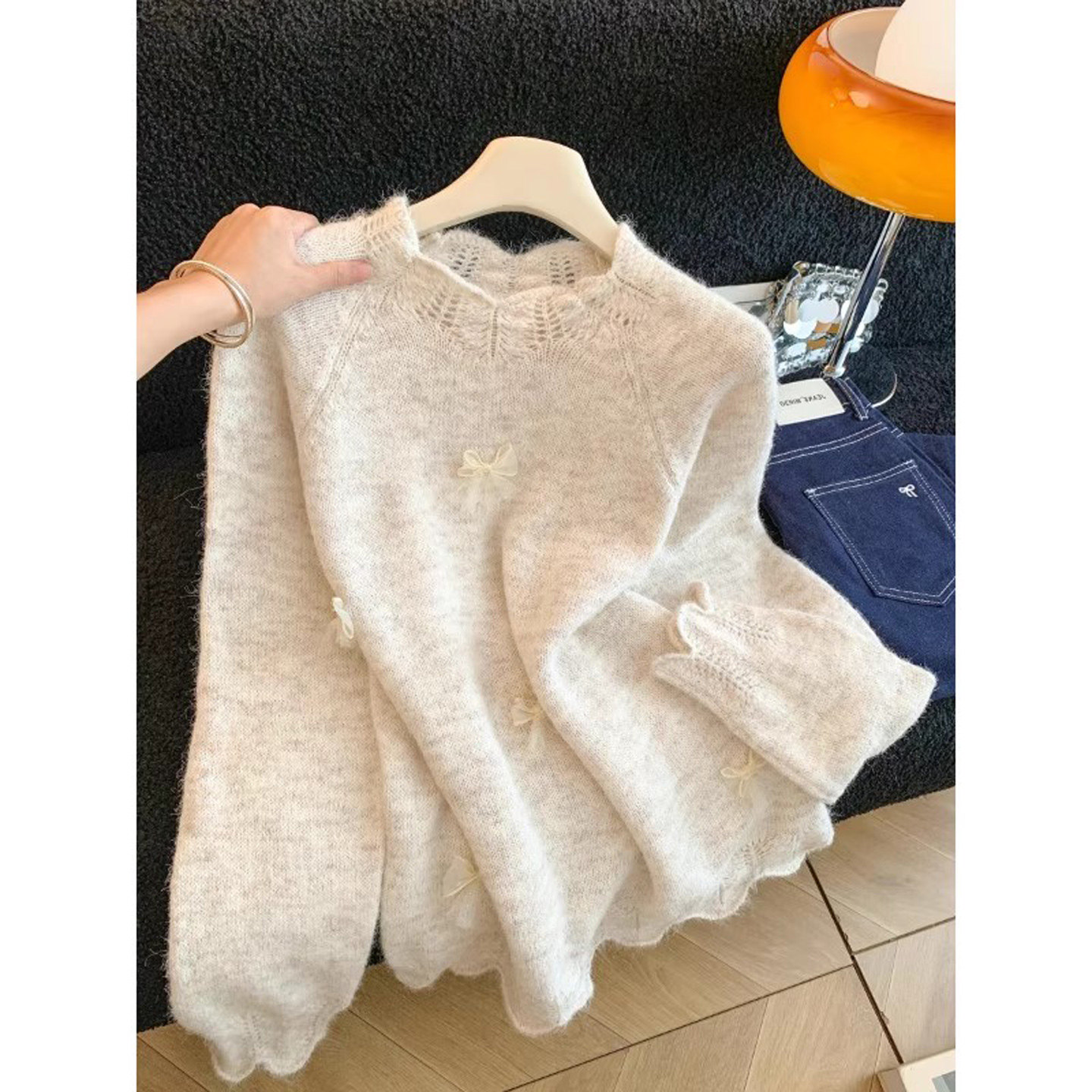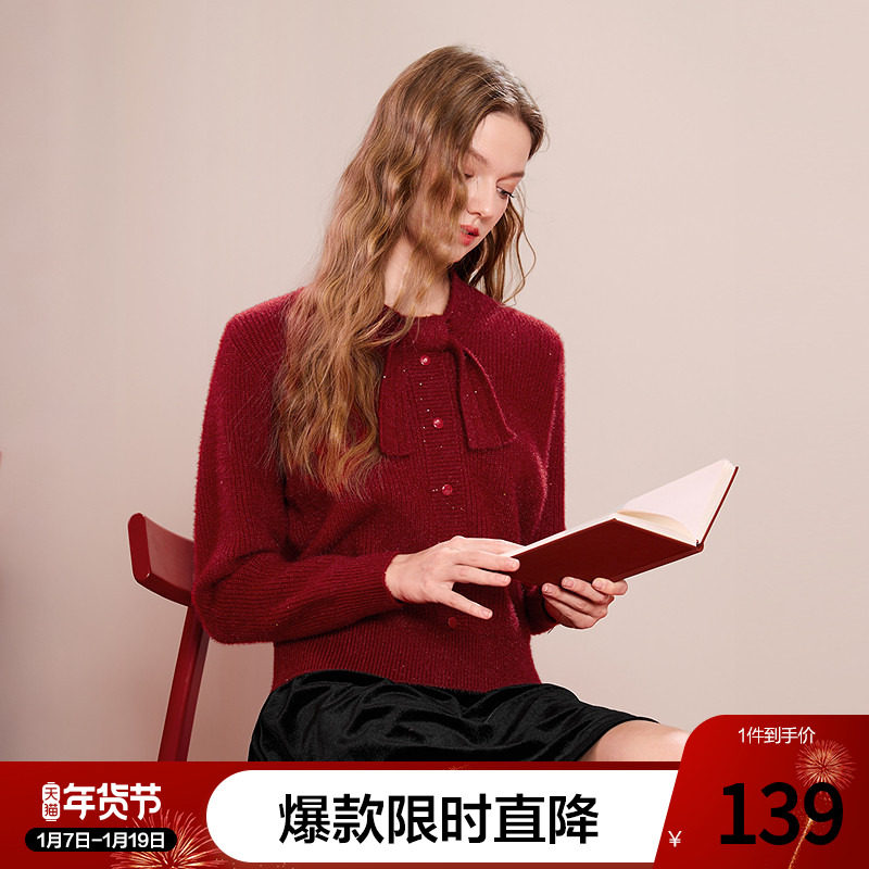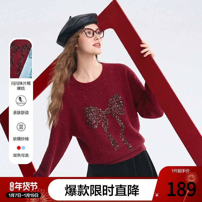 - 蝴蝶结毛衣女