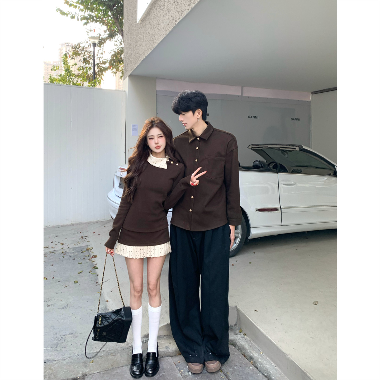 情侣装春季2026新款ins设计感小众一裙一衣法式学院风Polo领卫衣