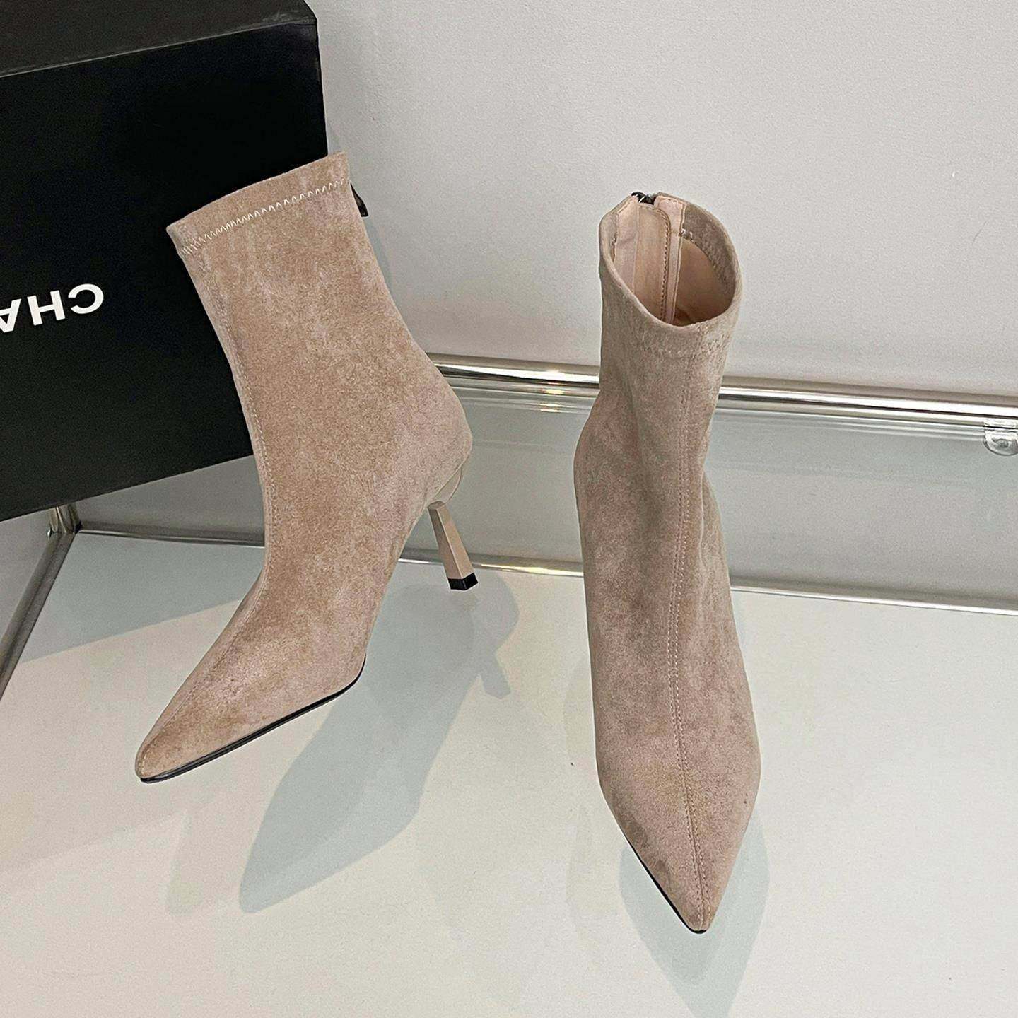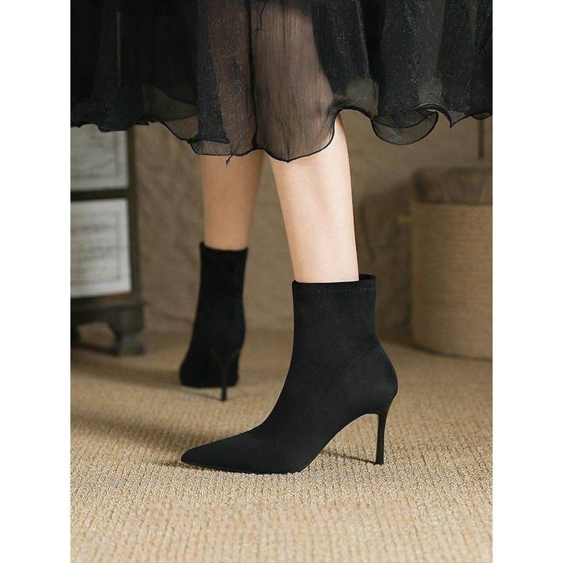 春秋高跟尖头短靴女2026年新款气质法式小裸靴细跟绒面弹力0115ud