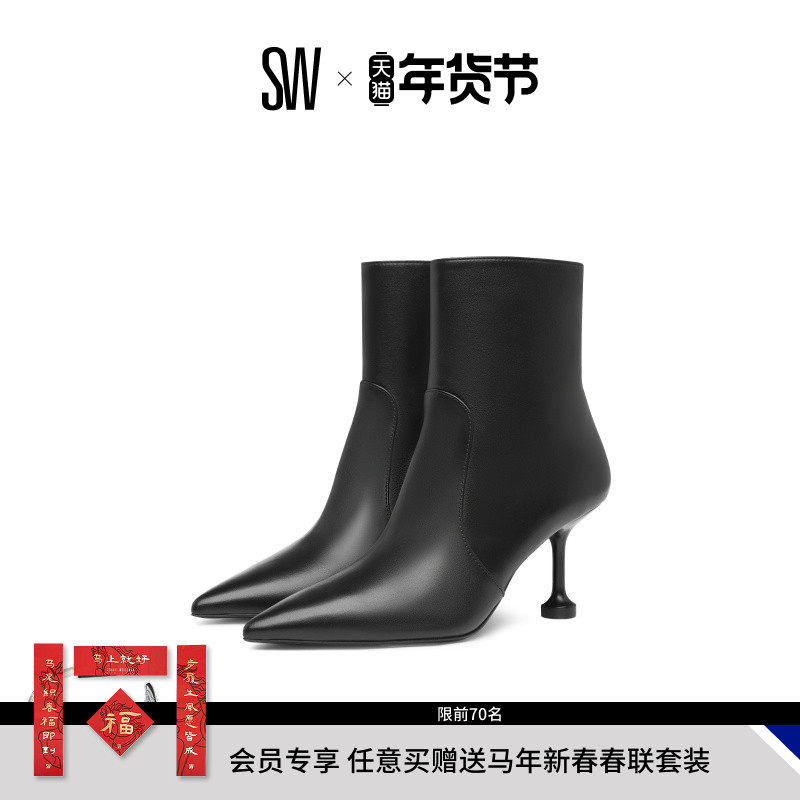 包小姐与鞋先生2025年冬季新品简约羊皮高跟尖头短靴女253537