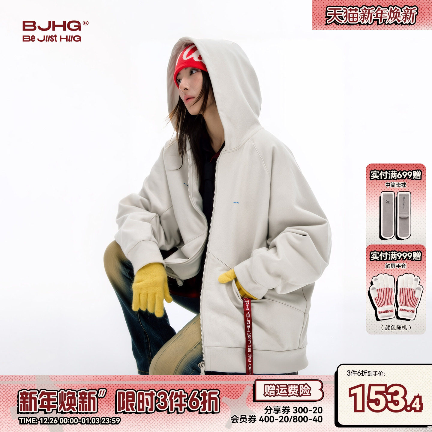 - 冬季宽松连帽卫衣女