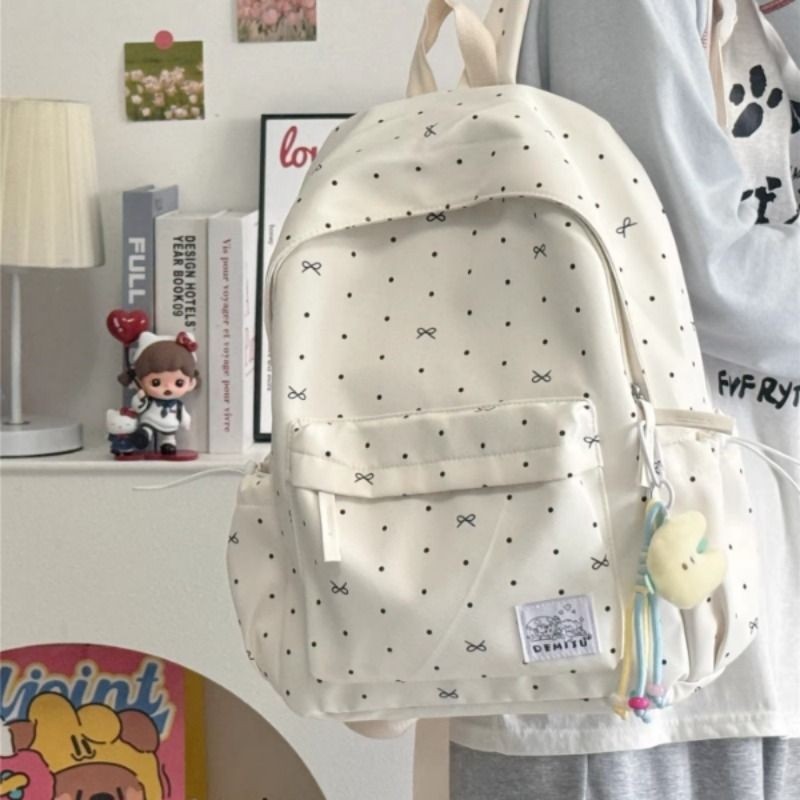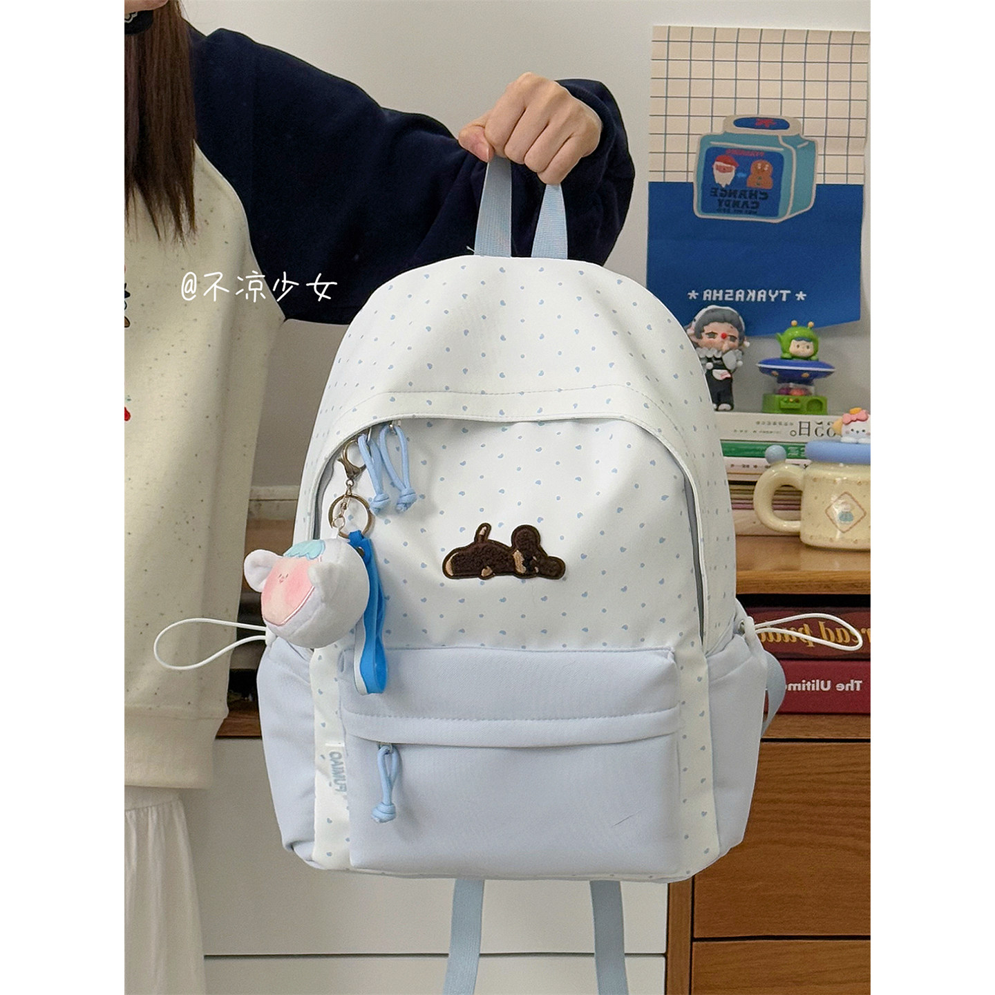 大容量小清新书包女初高中生学院风波点双肩包百搭轻便旅行背包潮