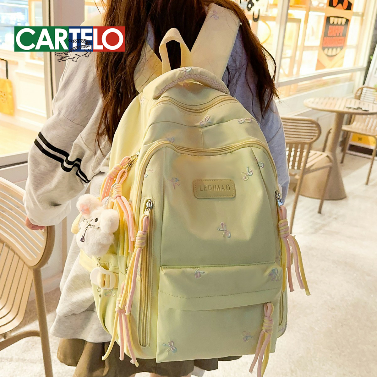 蝴蝶结刺绣小清新书包初中女生高颜值ins大容量背包高中生双肩包