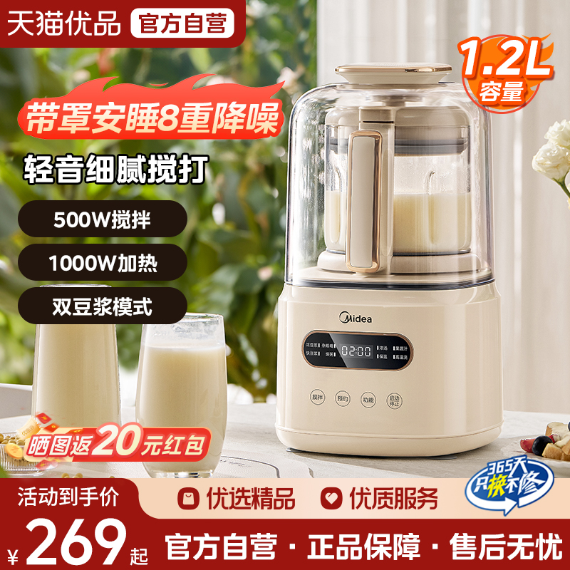 美的豆浆机家用隔音罩新款破壁机多功能料理机榨汁机官方旗舰店静