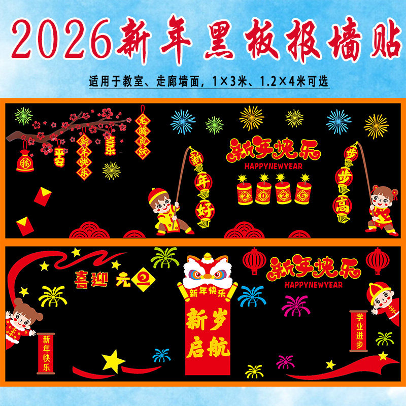 2026新年元旦黑板报装饰贴纸春节主题教室走廊墙面布置材料中小学