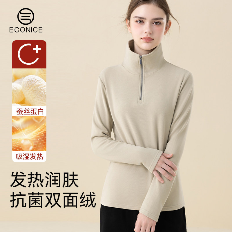 德绒发热立领拉链卫衣保暖上衣修身套头打底衫秋冬加厚长袖t恤女