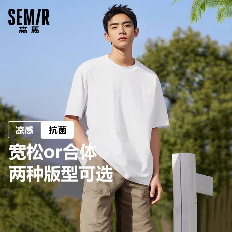 [商场同款]森马短袖T恤男2025夏季新款简约纯色上衣修身套头夏装