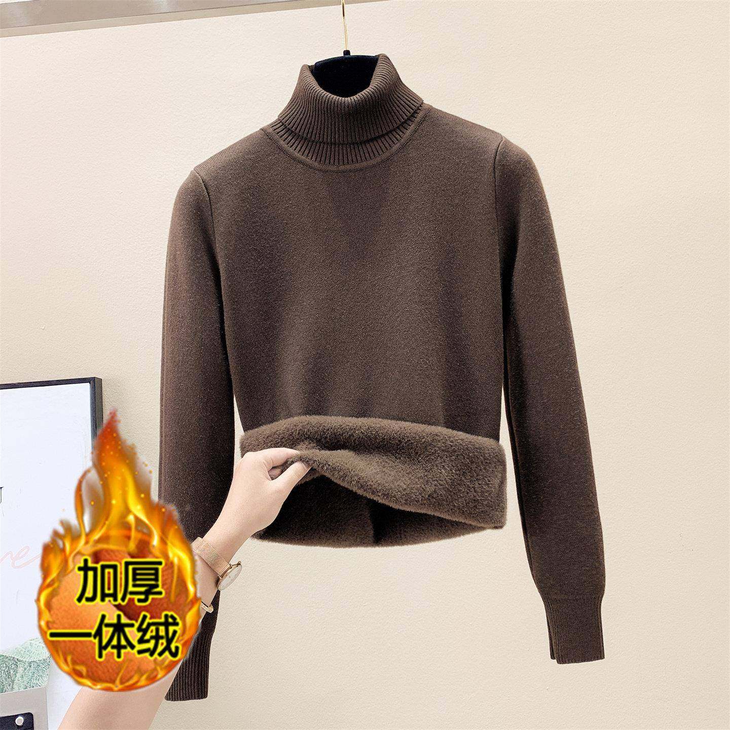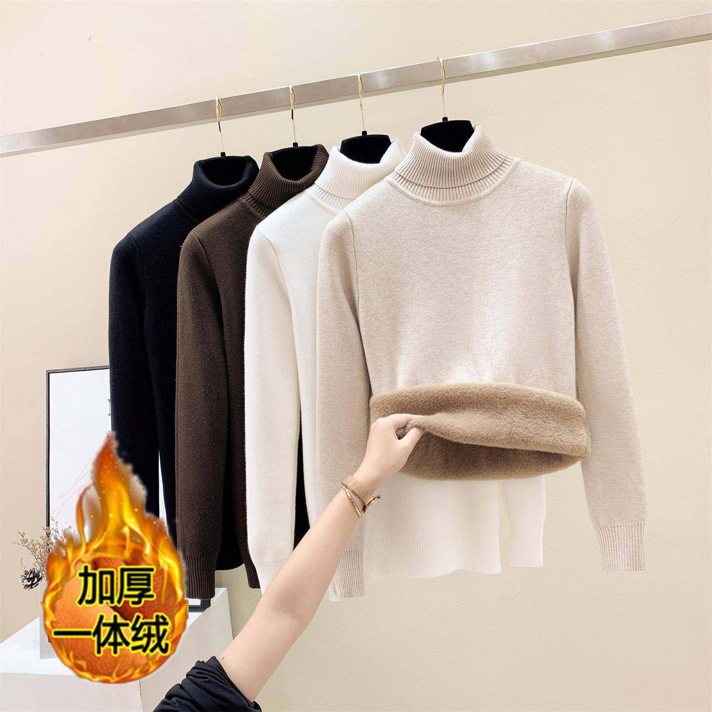 秋冬高领毛衣女加绒加厚一体绒打底衫内搭保暖上衣修身套头针织衫