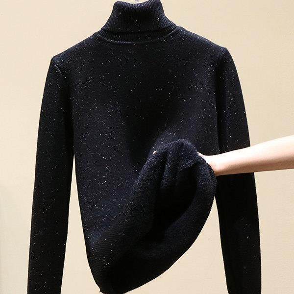 秋冬季高领毛衣女加绒加厚一体绒亮丝打底保暖上衣修身套头针织衫