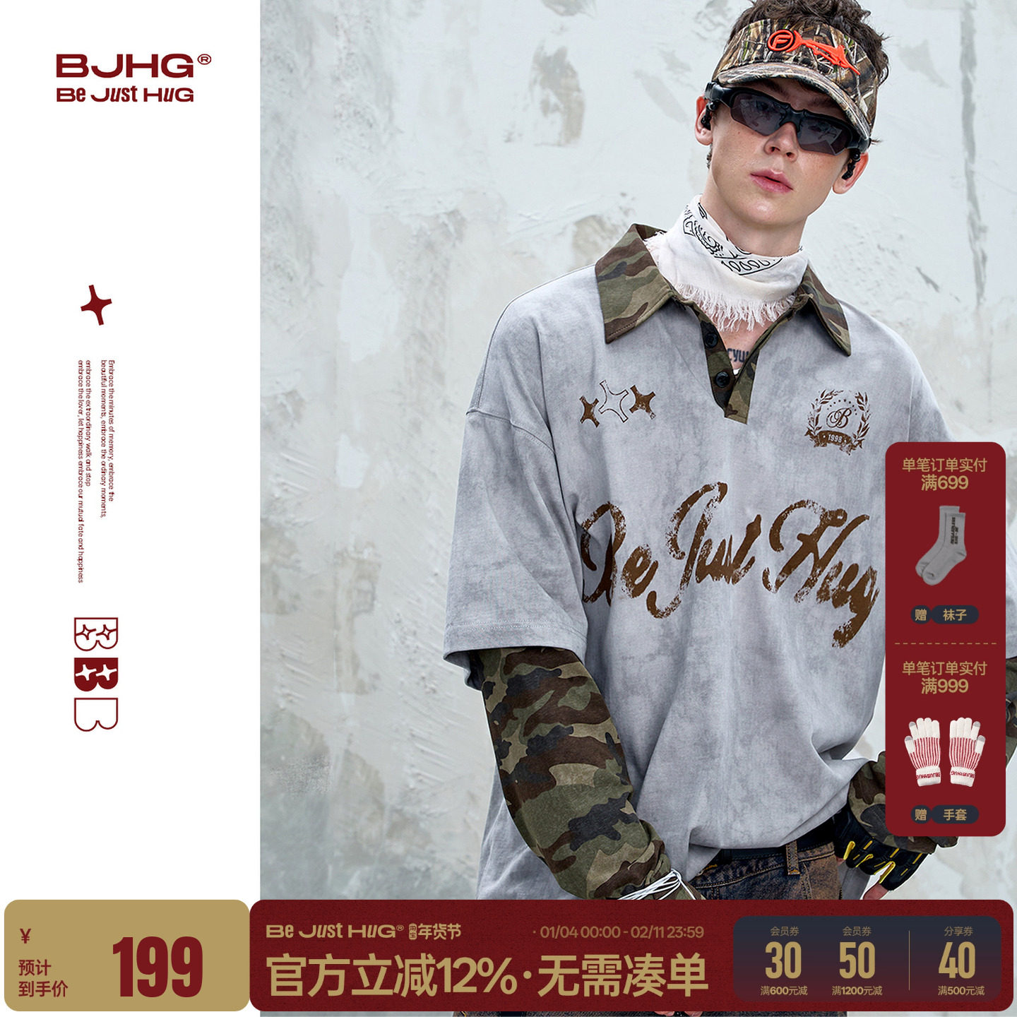 BJHG不计后果 迷彩假两件polo衫翻领卫衣男款冬季打底衫长袖T恤女