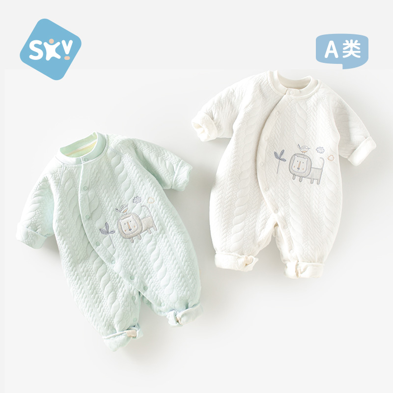 舒贝怡新生婴儿秋冬季宝宝连体衣夹棉保暖爬服加厚婴幼儿哈衣冬装