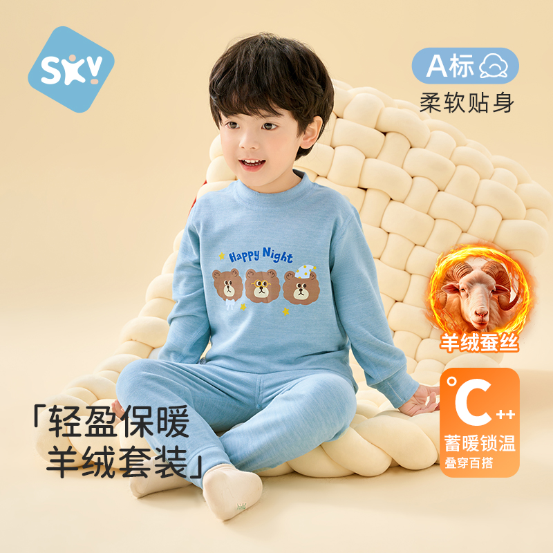舒贝怡儿童秋衣秋裤蚕丝绒男女大童保暖内衣套装宝宝睡衣家居服冬
