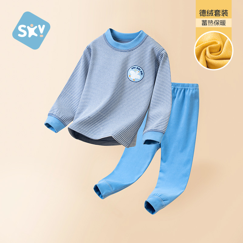 舒贝怡儿童睡衣男童女童加绒保暖内衣套装宝宝德绒家居服秋衣秋裤