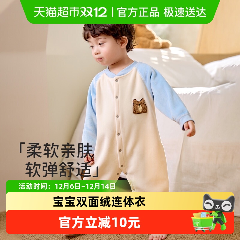 舒贝怡婴幼儿衣服秋冬保暖双面绒宝宝连体衣哈衣新生儿外出服套装