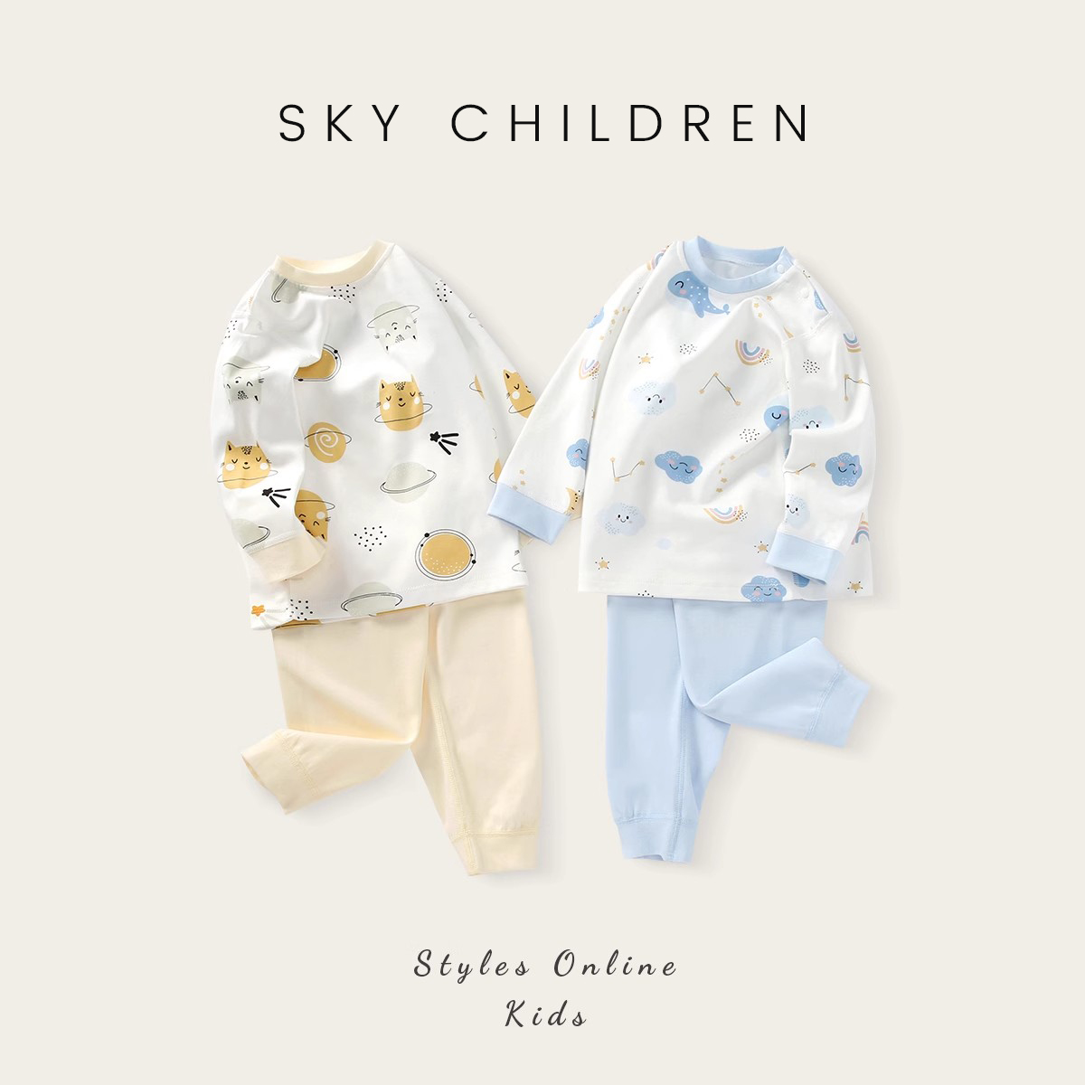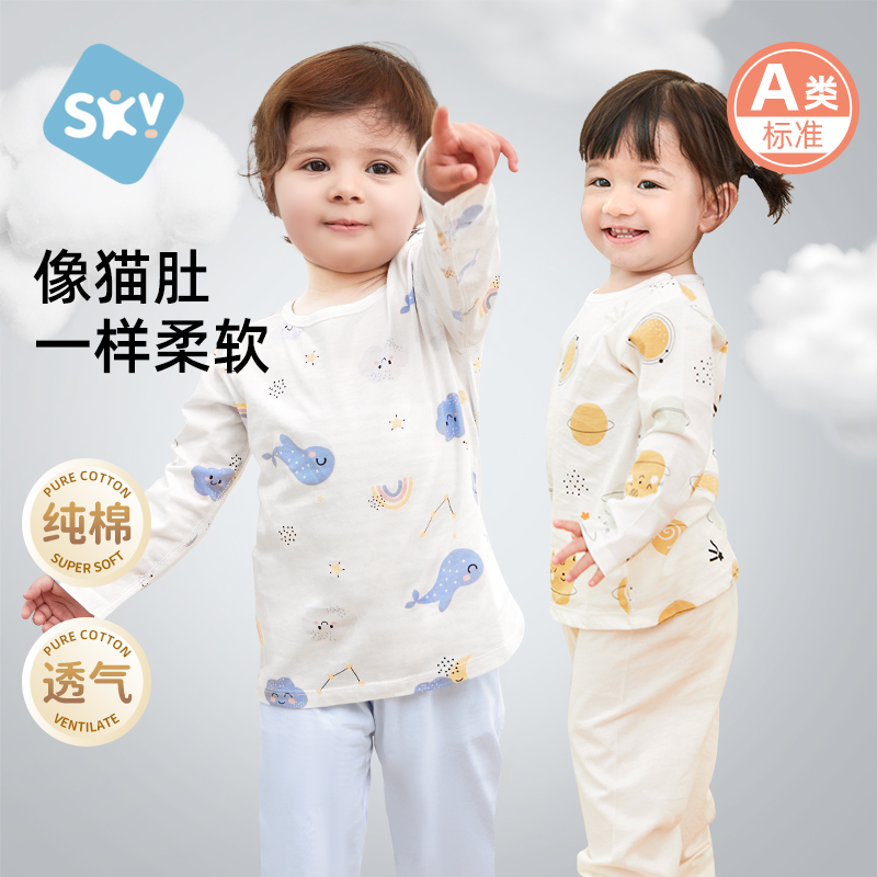 舒贝怡秋装新款儿童内衣套装男童女童睡衣婴儿宝宝纯棉分体家居服