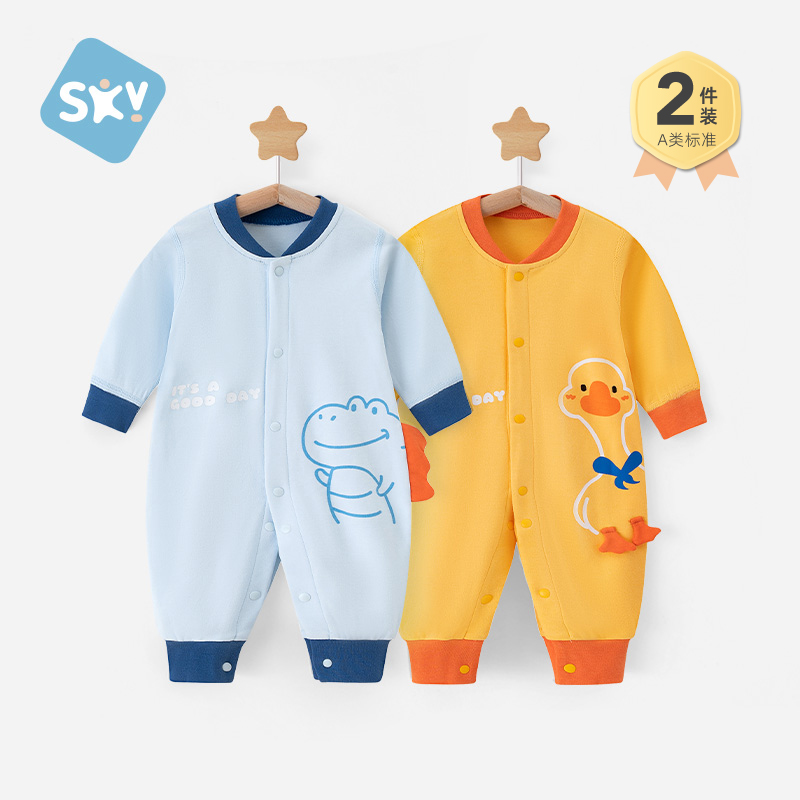 舒贝怡婴儿衣服新生儿包屁衣0一6月春秋款一体加厚纯棉a类连体衣