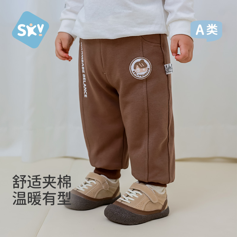 舒贝怡2025秋季儿童裤子宝宝夹棉加厚保暖卫裤休闲男女童冬季长裤