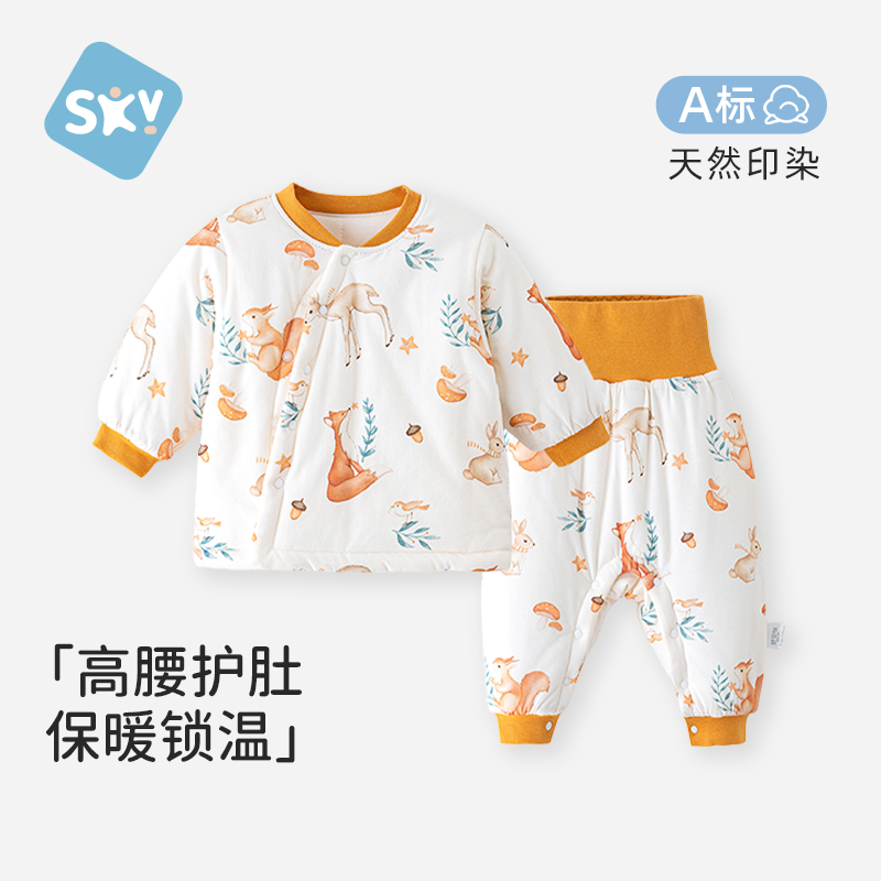 婴儿秋冬棉服两件套宝宝夹棉衣服保暖加厚冬装高腰护肚裤分体套装