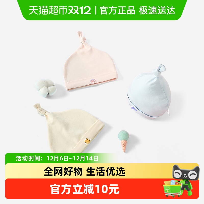 舒贝怡婴儿帽子秋冬0到3个月初生宝宝护囟门帽新生儿胎帽春秋纯棉