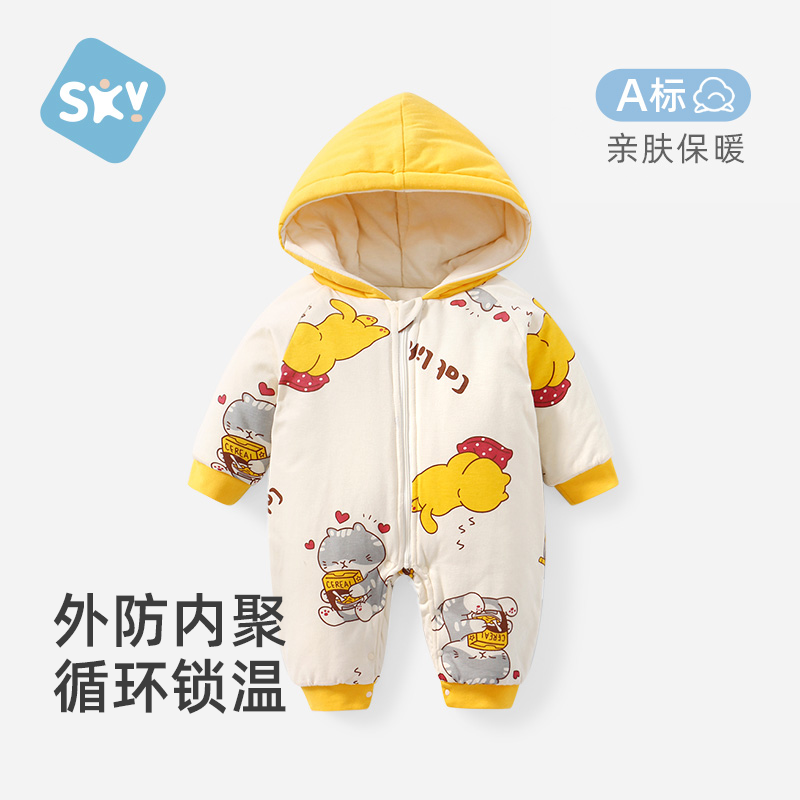舒贝怡婴儿夹棉连体衣冬季宝宝衣服加厚保暖哈衣冬装爬服外出棉服