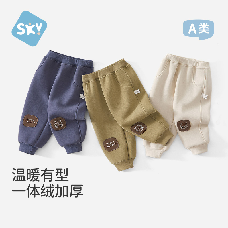 舒贝怡2025秋冬季儿童裤子男女宝宝加绒加厚保暖卫裤休闲百搭长裤