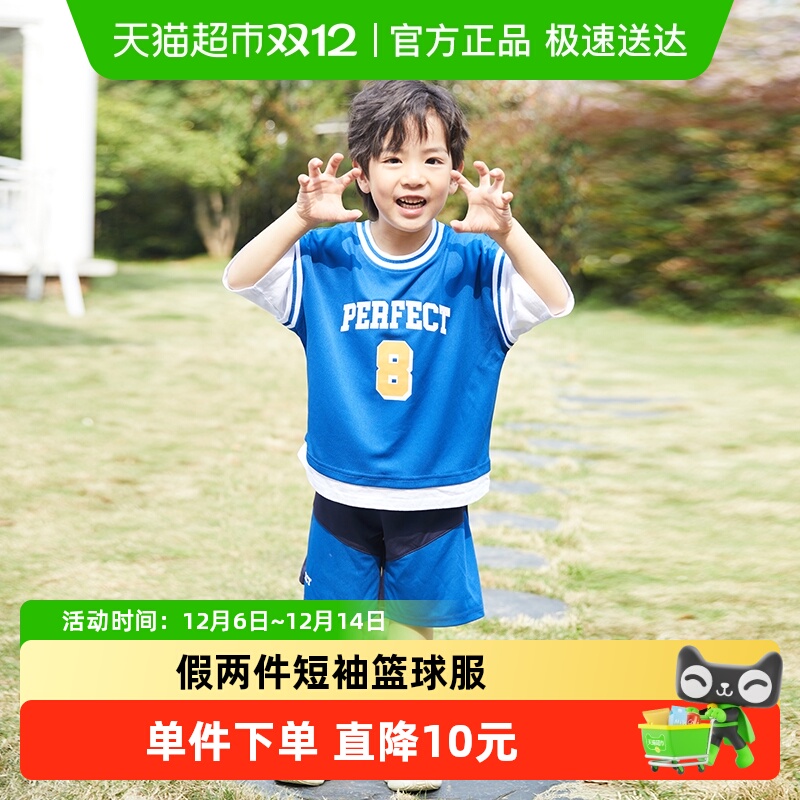 舒贝怡男大童短袖运动套装2025新款夏季儿童薄款速干篮球服训练服