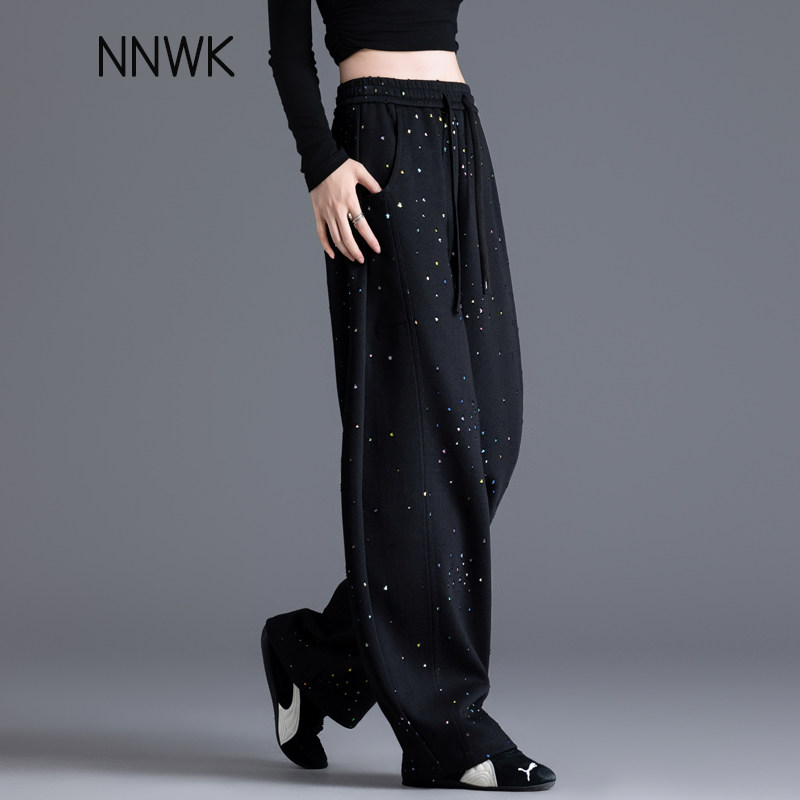 【超值特惠】小野和子黑色直筒裤女秋针织磨毛运动阔腿休闲卫裤TK