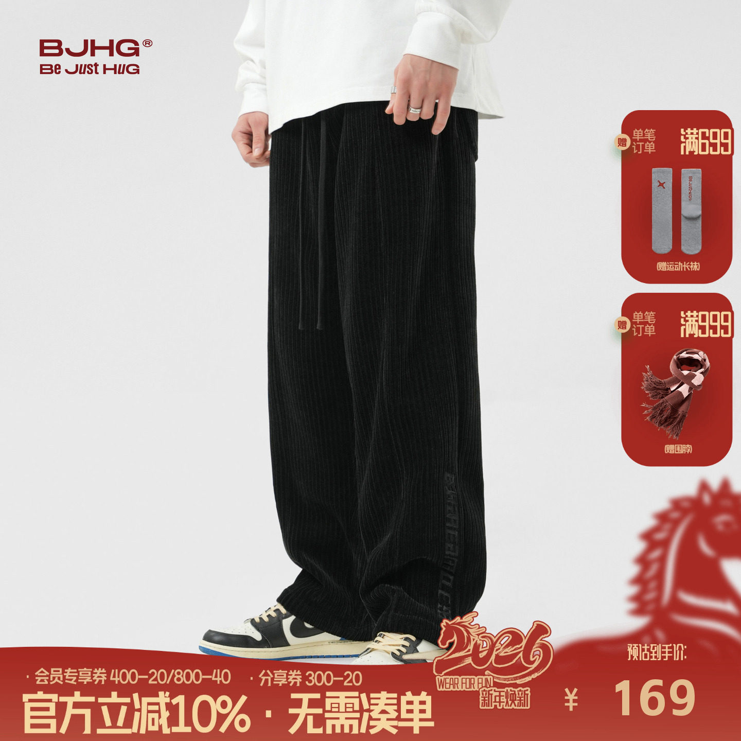 BJHG不计后果灯芯绒加绒黑色裤子男款冬季休闲裤加厚运动休闲卫裤