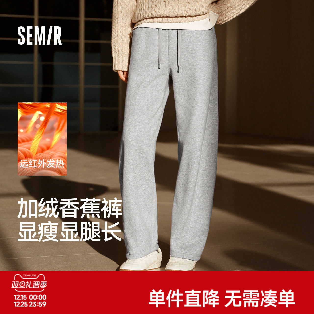 森马休闲裤女冬季黑色裤子发热抑菌抓绒宽松弯刀裤2025新款香蕉裤