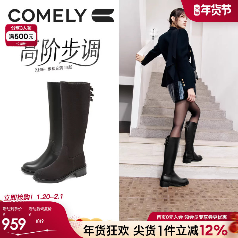 康莉时装长靴女2025年冬季新款中跟长筒不过膝真皮靴子商场同款