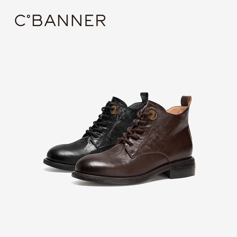 头层牛皮中跟复古手工女皮靴短筒加绒保暖防滑轻便秋冬季简约百搭