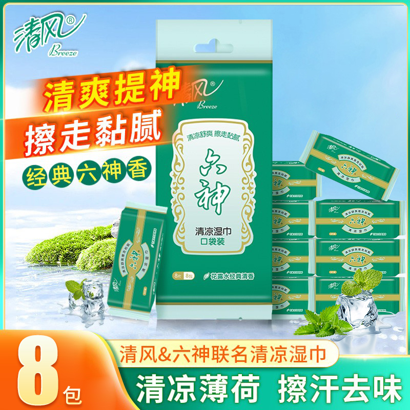 清风六神联名小包湿巾清凉冰感降温夏季运动军训湿纸巾独立便携装