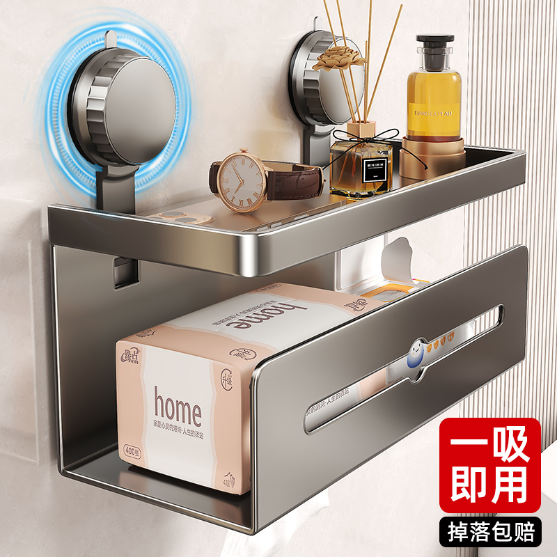 吸盘纸巾盒卫生间免打孔壁挂式厕所纸巾挂架浴室防水卫生纸置物架
