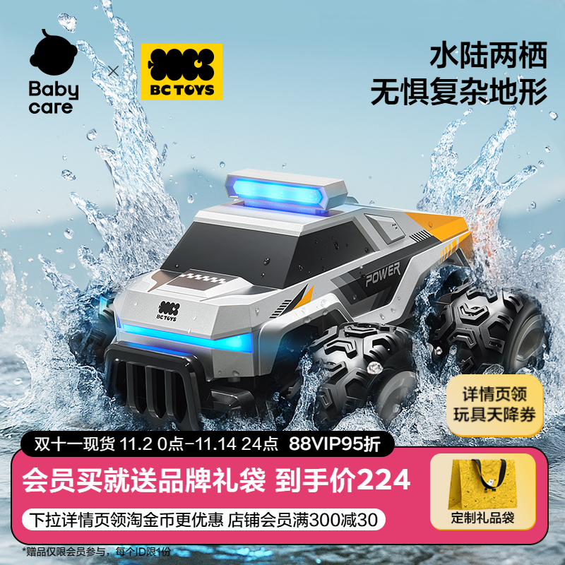 babycare水陆两栖遥控车bctoys儿童电动特技四驱越野赛车生日礼物