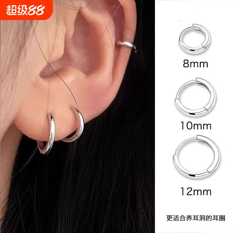 素圈耳环耳饰耳钉耳圈耳骨钉小众高级感耳扣女925纯银养耳洞通勤
