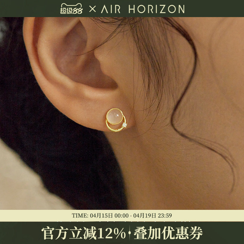 JXRXs925纯银白玉髓耳钉女小众设计感绝美耳环养耳洞小巧精致耳饰