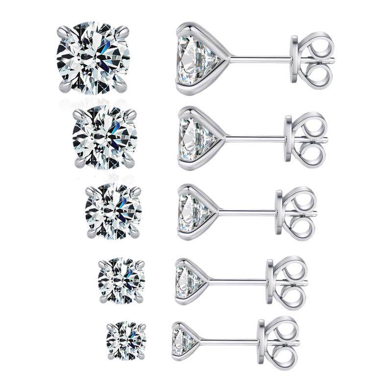 JASMINE*925纯银超闪一粒小耳钉2.5-6mm男女合成锆石耳饰耳骨钉