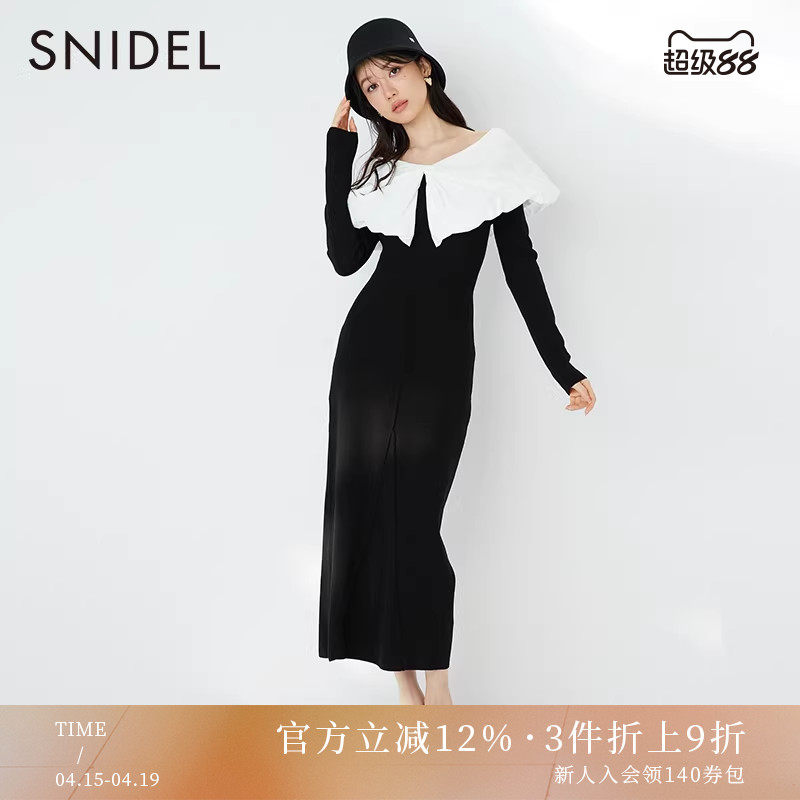 SNIDEL秋冬甜美娃娃领针织收腰修身显瘦连衣裙SWNO234125