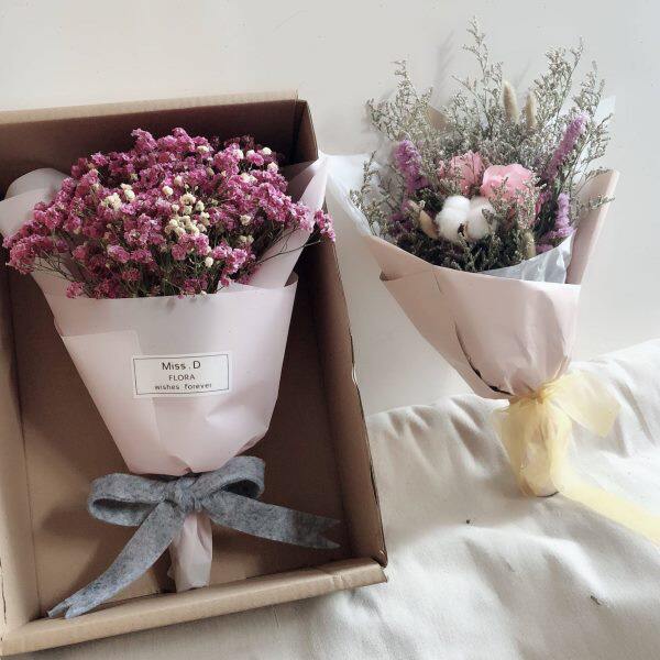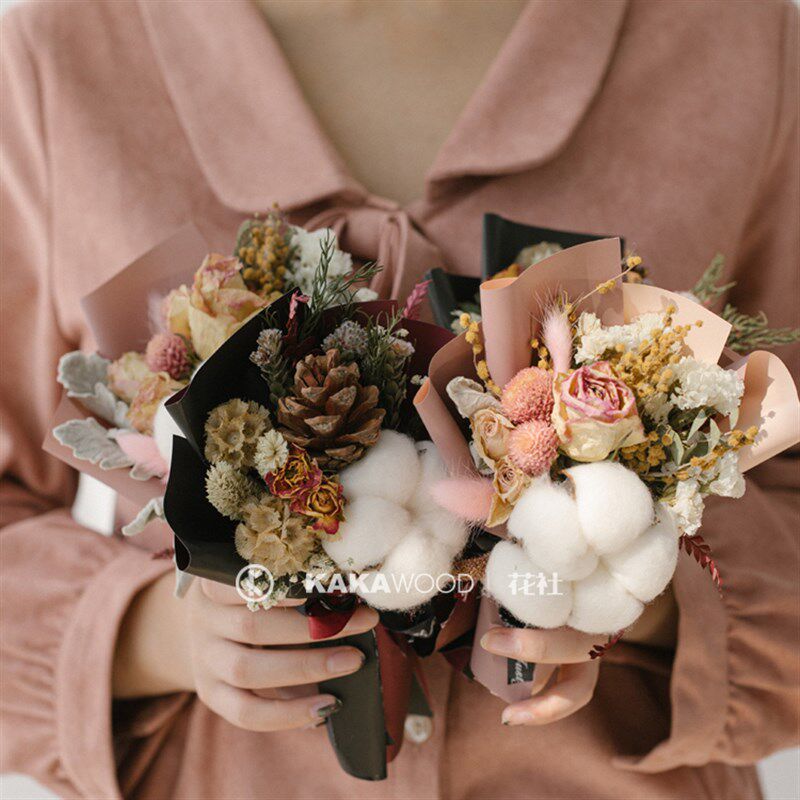 ins花束迷你礼品花棉花干花束手捧花真花小花束礼盒装节日礼物