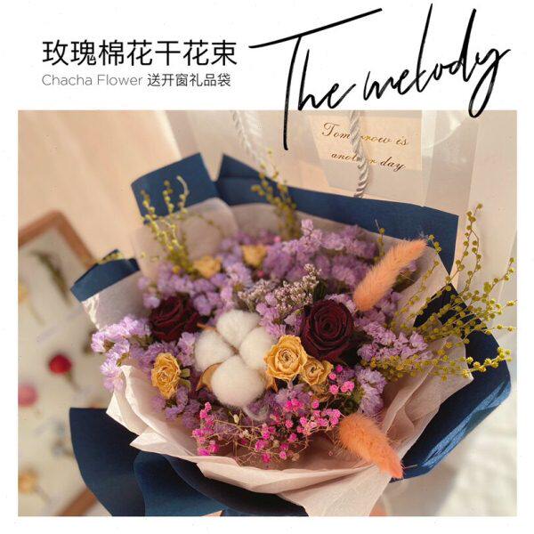 送礼品袋干花红白玫瑰棉花勿忘我送女友生日礼物情人节花束大包装