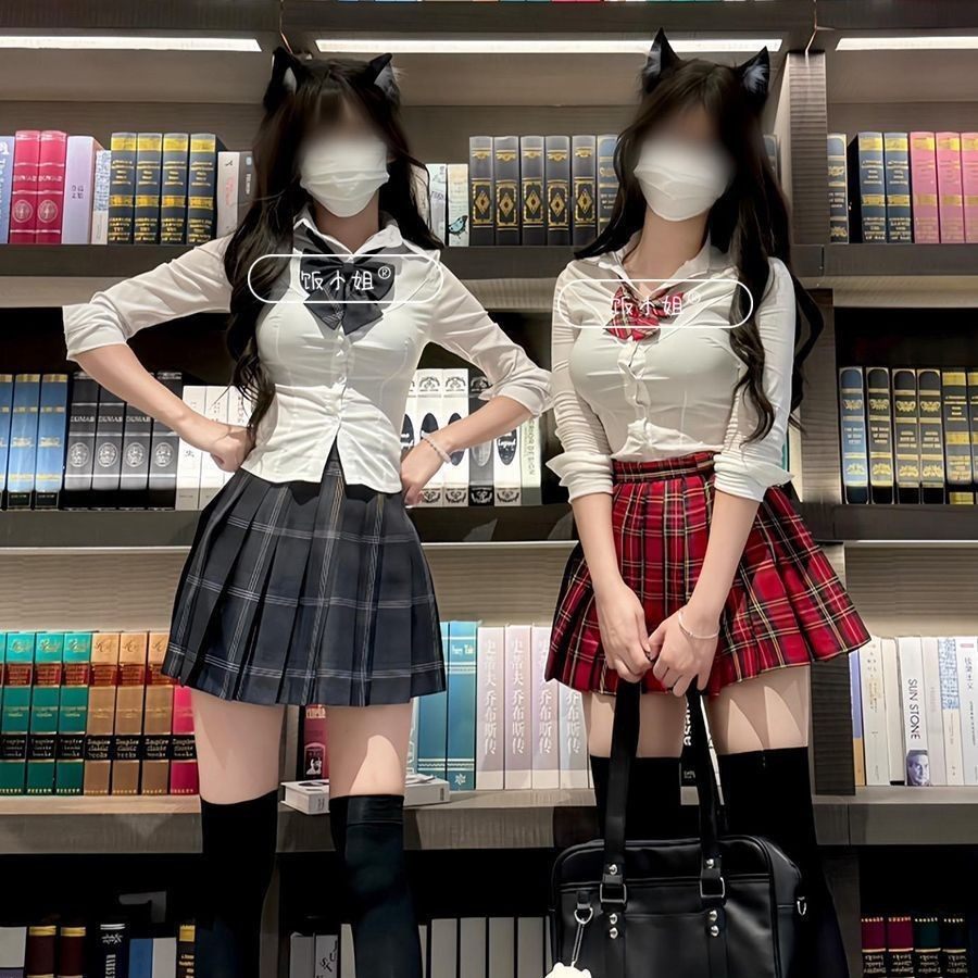 原创正版jk衬衫女学生纯欲风收腰衬衣冈梨田格裙子两件套制服套装