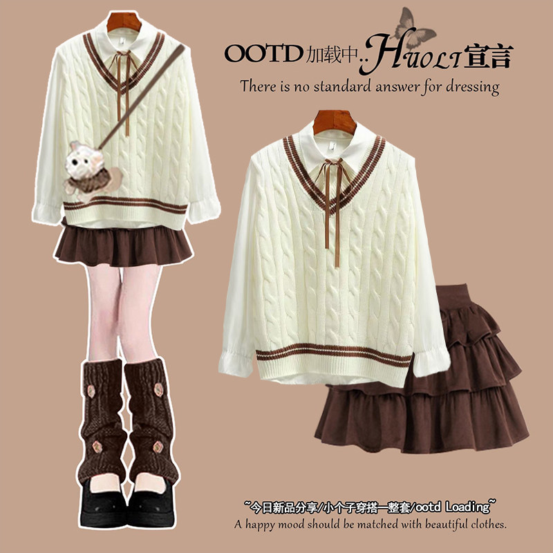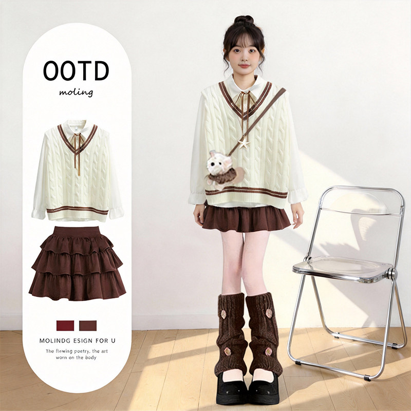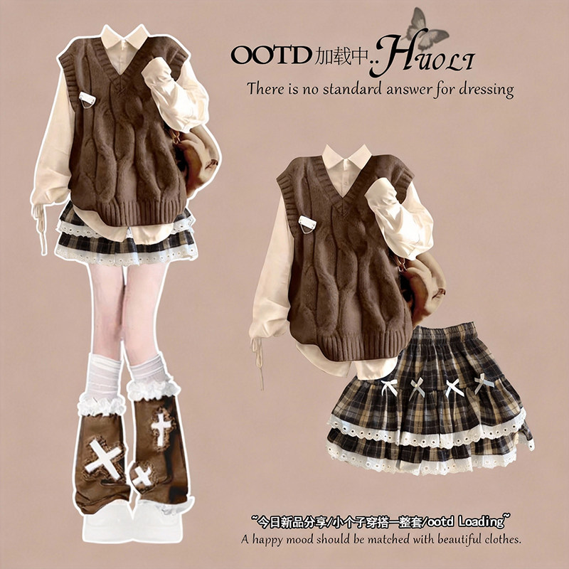 2025冬季套装女学生小个子学院风宽松针织马甲裙子洋气两件套