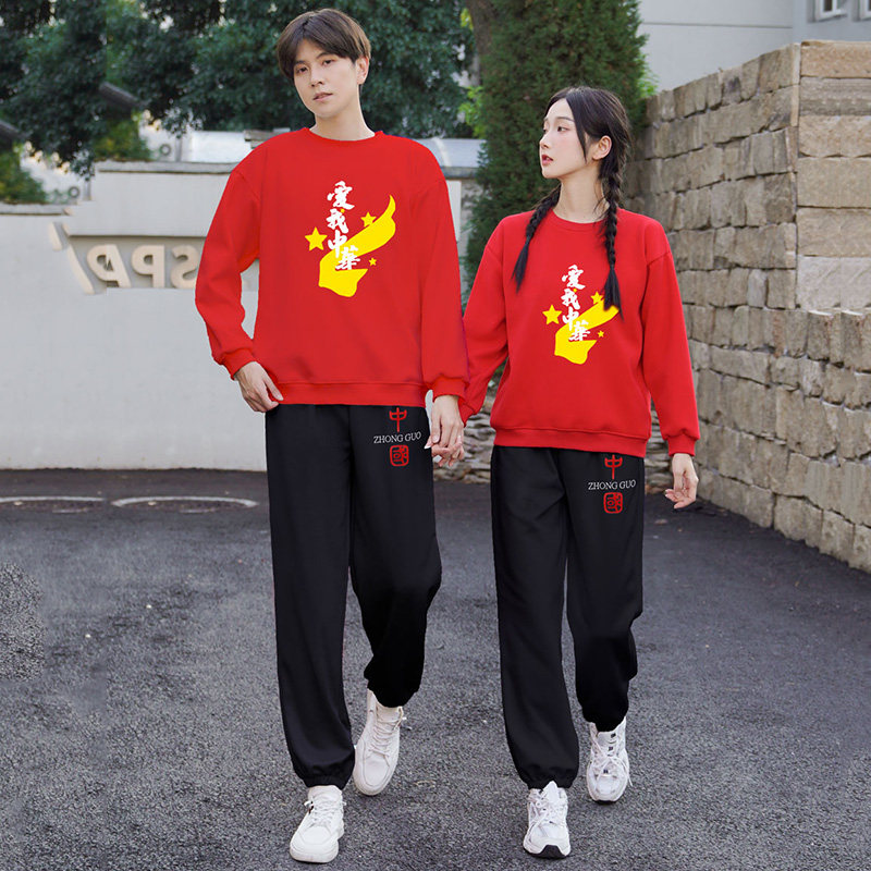 2025早春新款中国风团体演出服套装男女学生情侣装卫衣裙子两件套