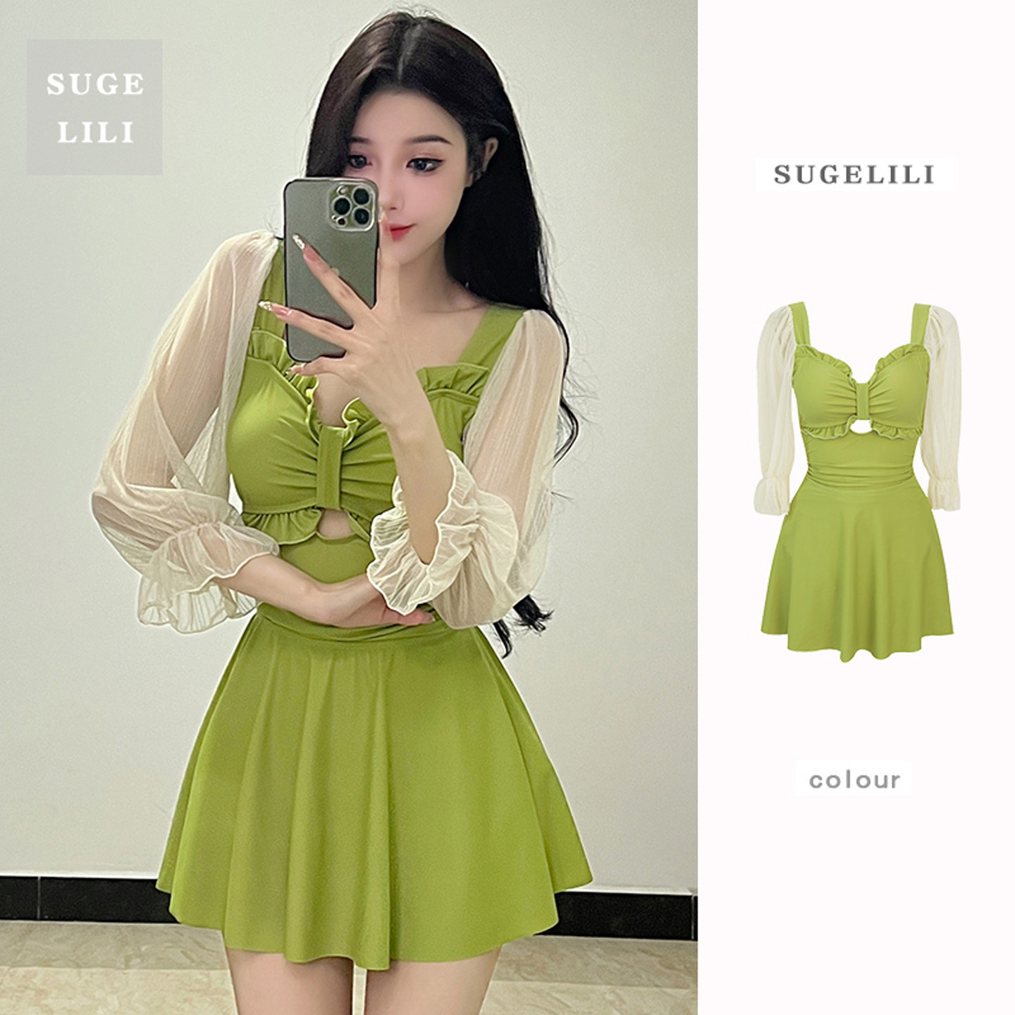 泳衣女泡温泉连体带裙子高级感两件套保守显瘦遮肚学生高颜值绝美