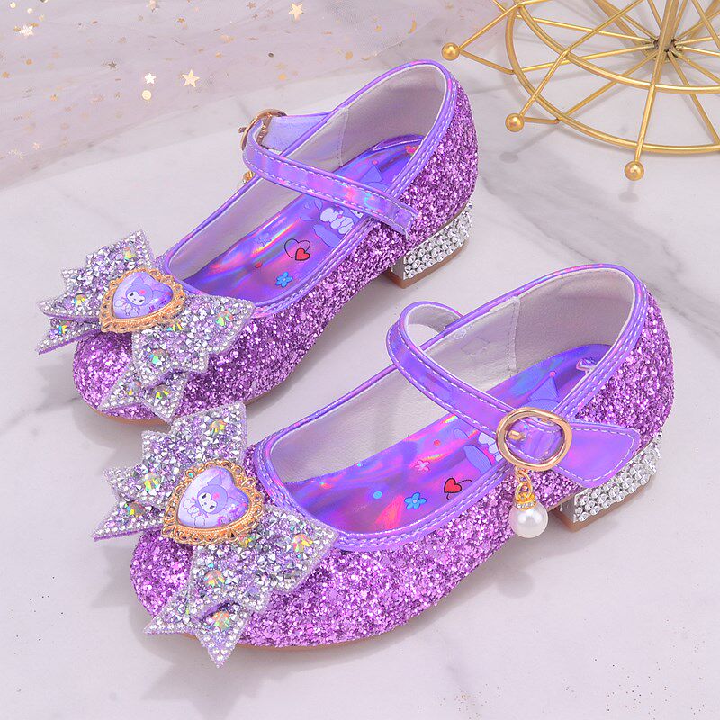 女童高跟鞋公主鞋库洛米儿童紫色水晶鞋软底小女孩单皮鞋春秋新款