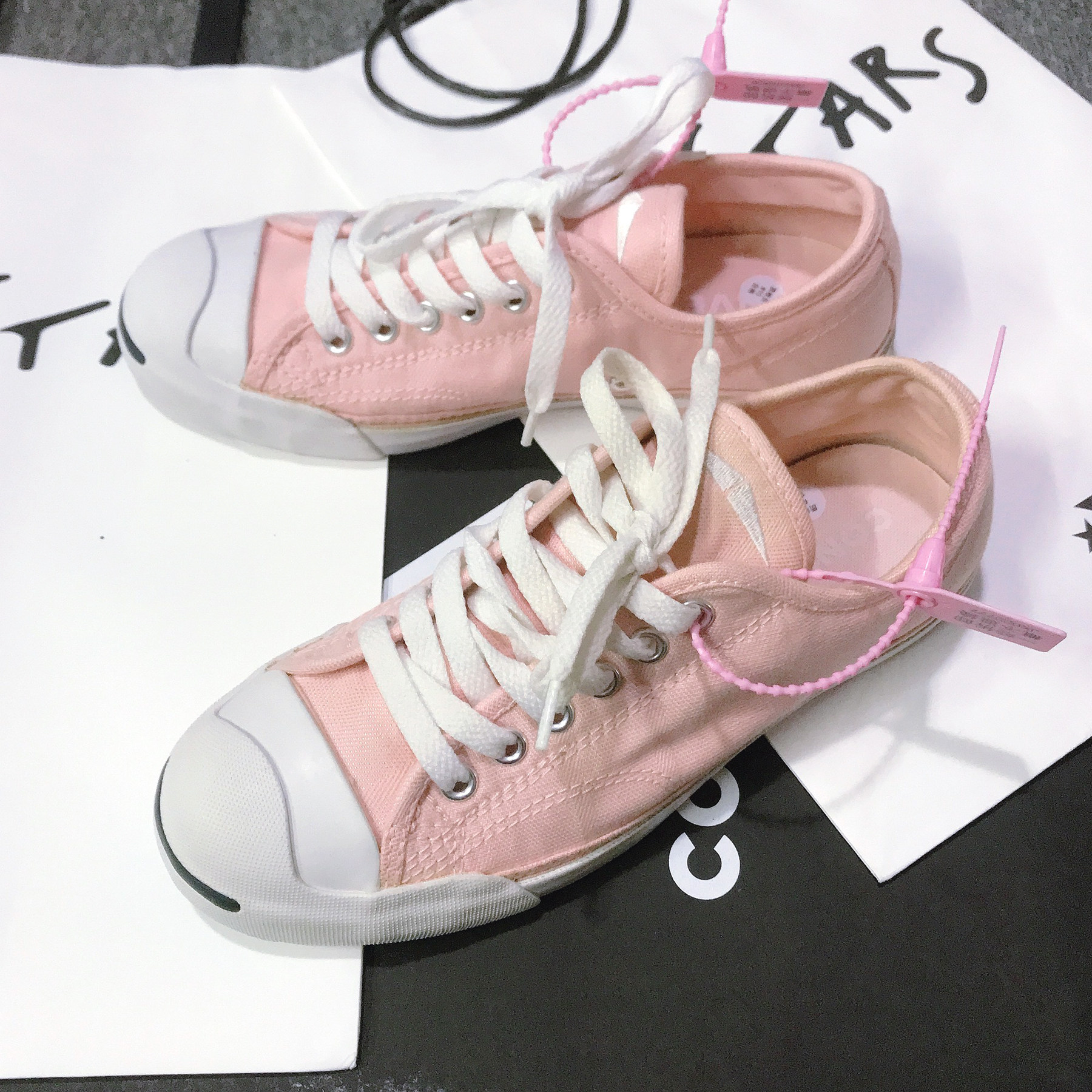 正品匡威 发黄污渍瑕疵特价薄底粉色暗纹开口笑低帮帆布鞋562175C