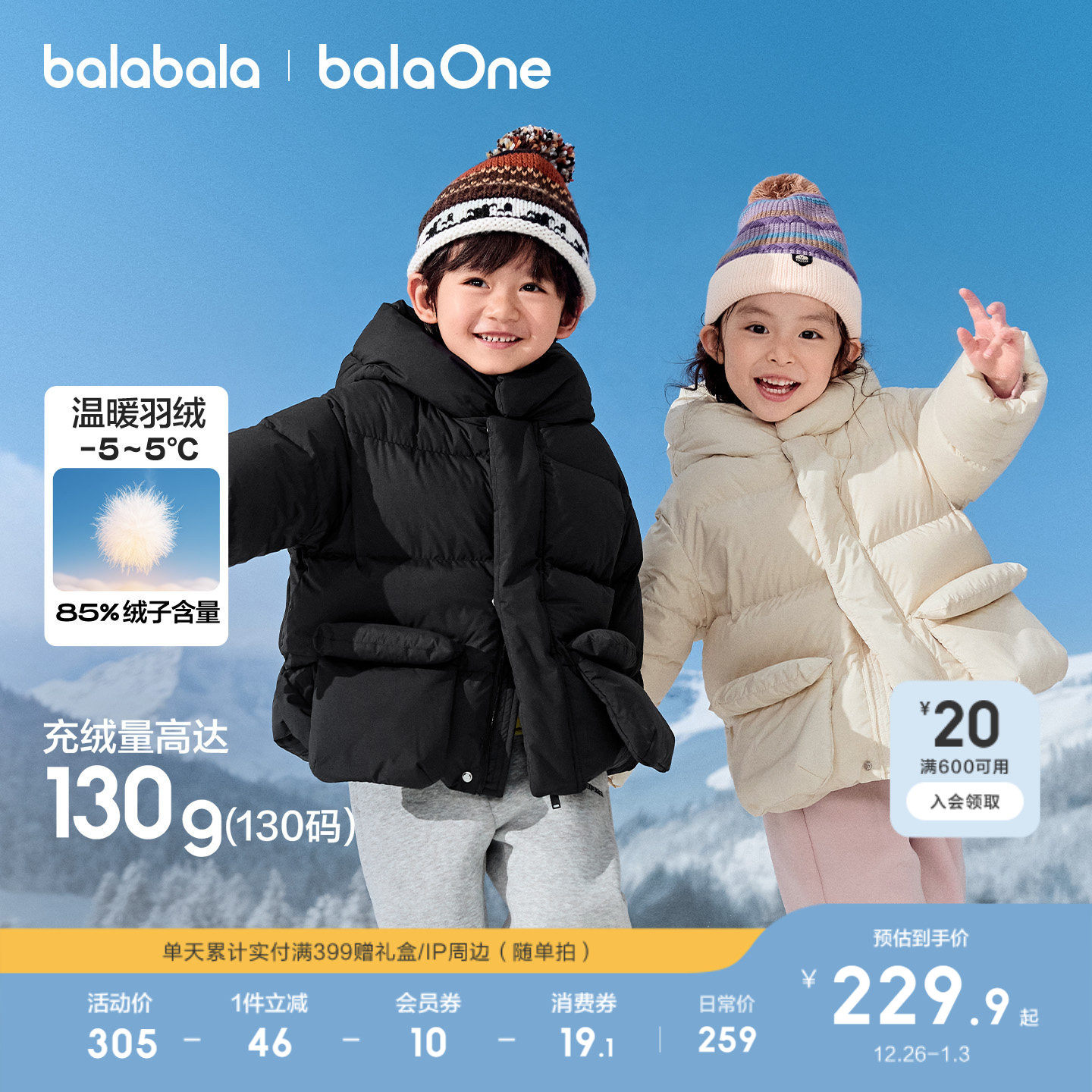 巴拉巴拉balaOne童装儿童羽绒服女童男童2025新款冬加厚鹅绒外套
