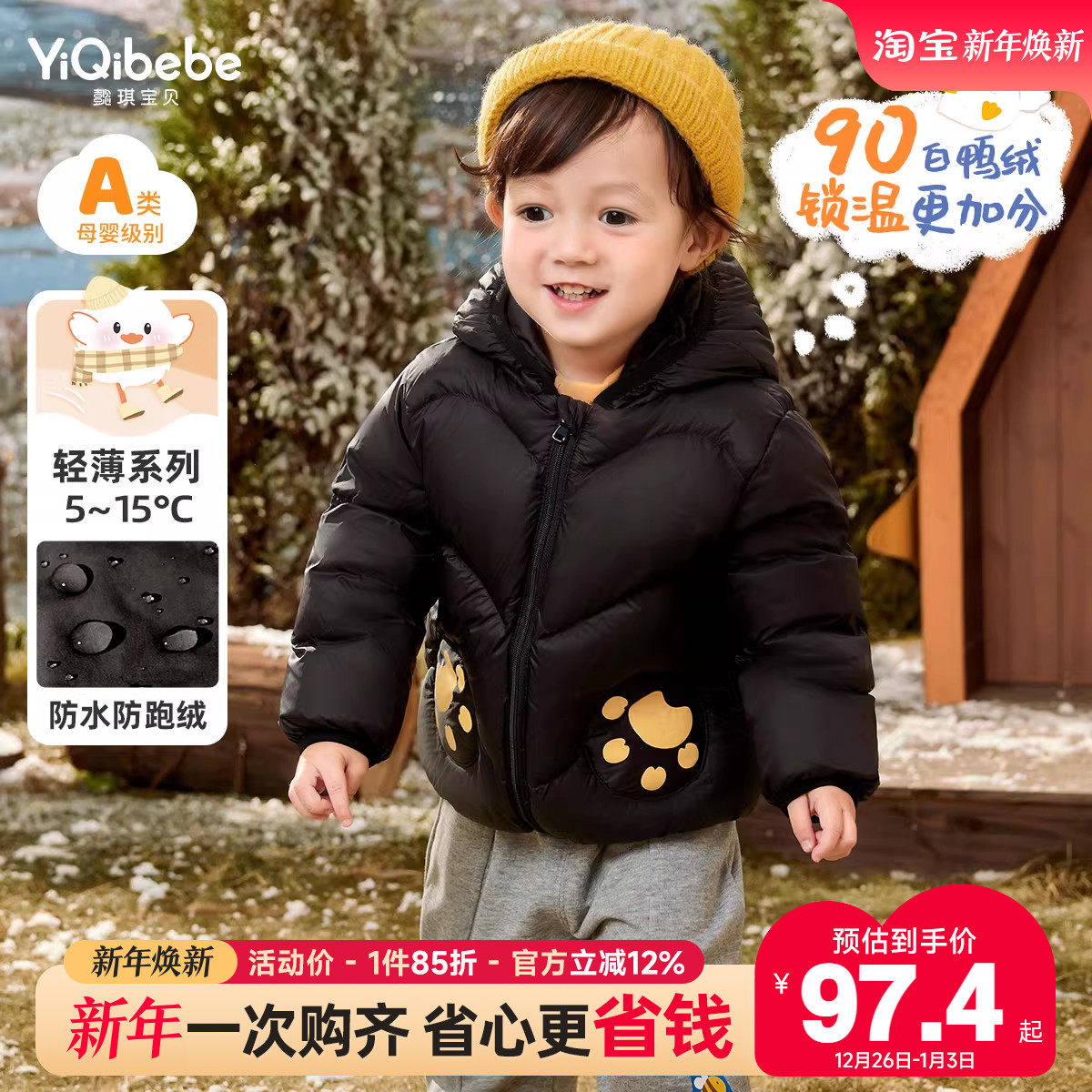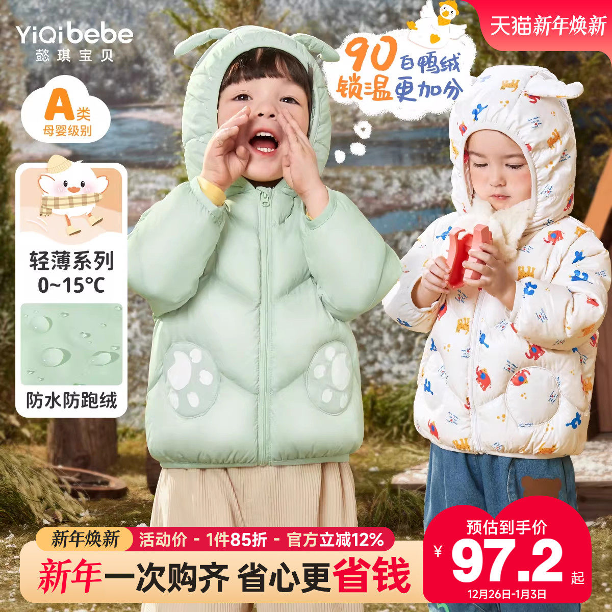 鸭鸭儿童羽绒服男童女童2025秋冬反季轻薄款时尚面包保暖宝宝外套